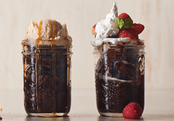 Using half the batter, divide between jars. Sprinkle each jar with 1 tablespoon of mini chocolate chips. Top each jar with the remaining batter.