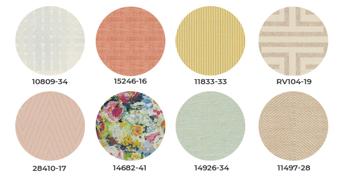A whisper of pink, icy blue, warm ivory, soft taupe, sandstone and pale gold set the tone for this look. The hues range from warm to cool, but all are delicate and muted, to keep the look feeling bright and fresh.Fashionable Fabrics